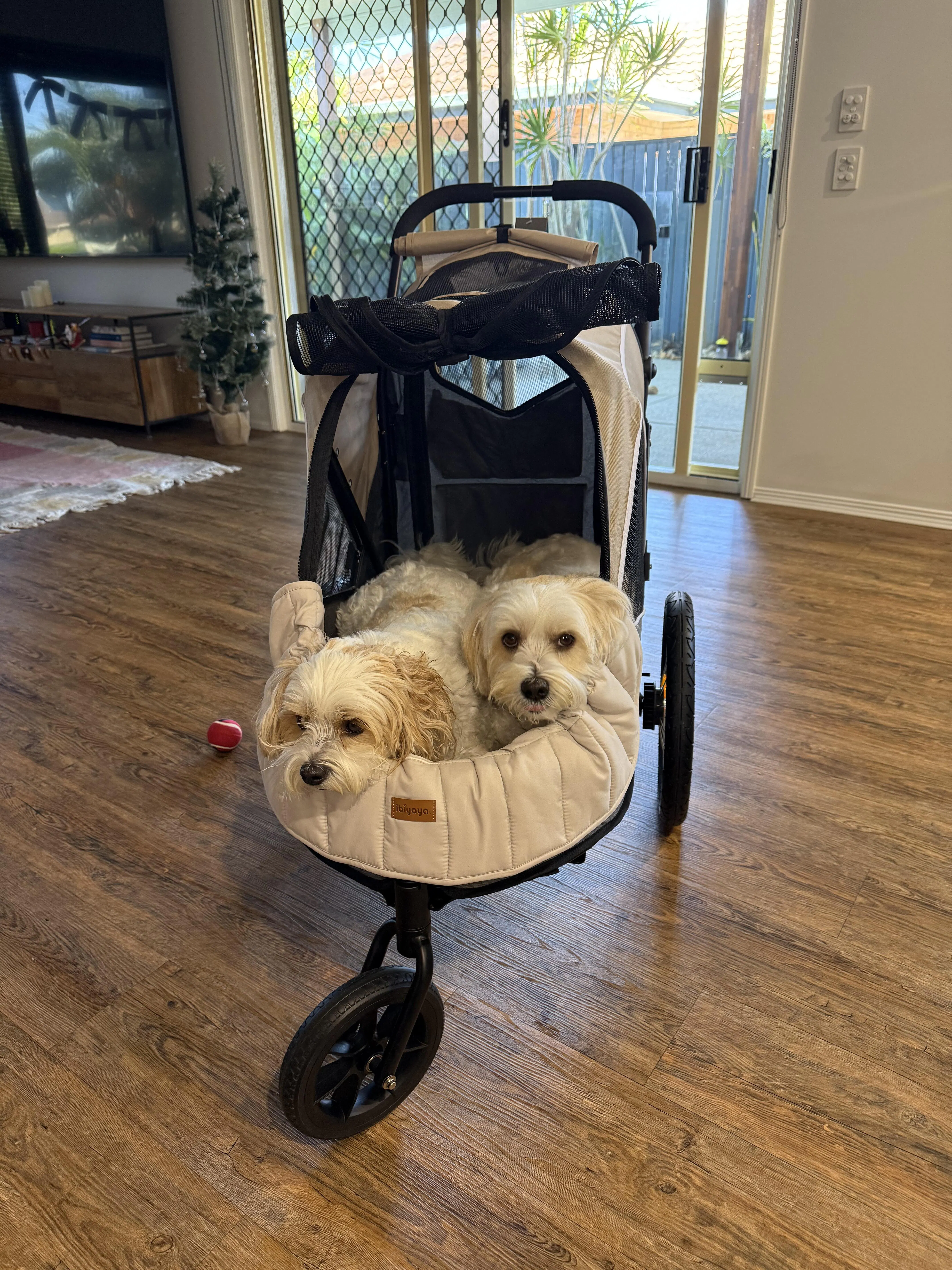 - Bike connecting tube to attach with bike and stroller raincover included